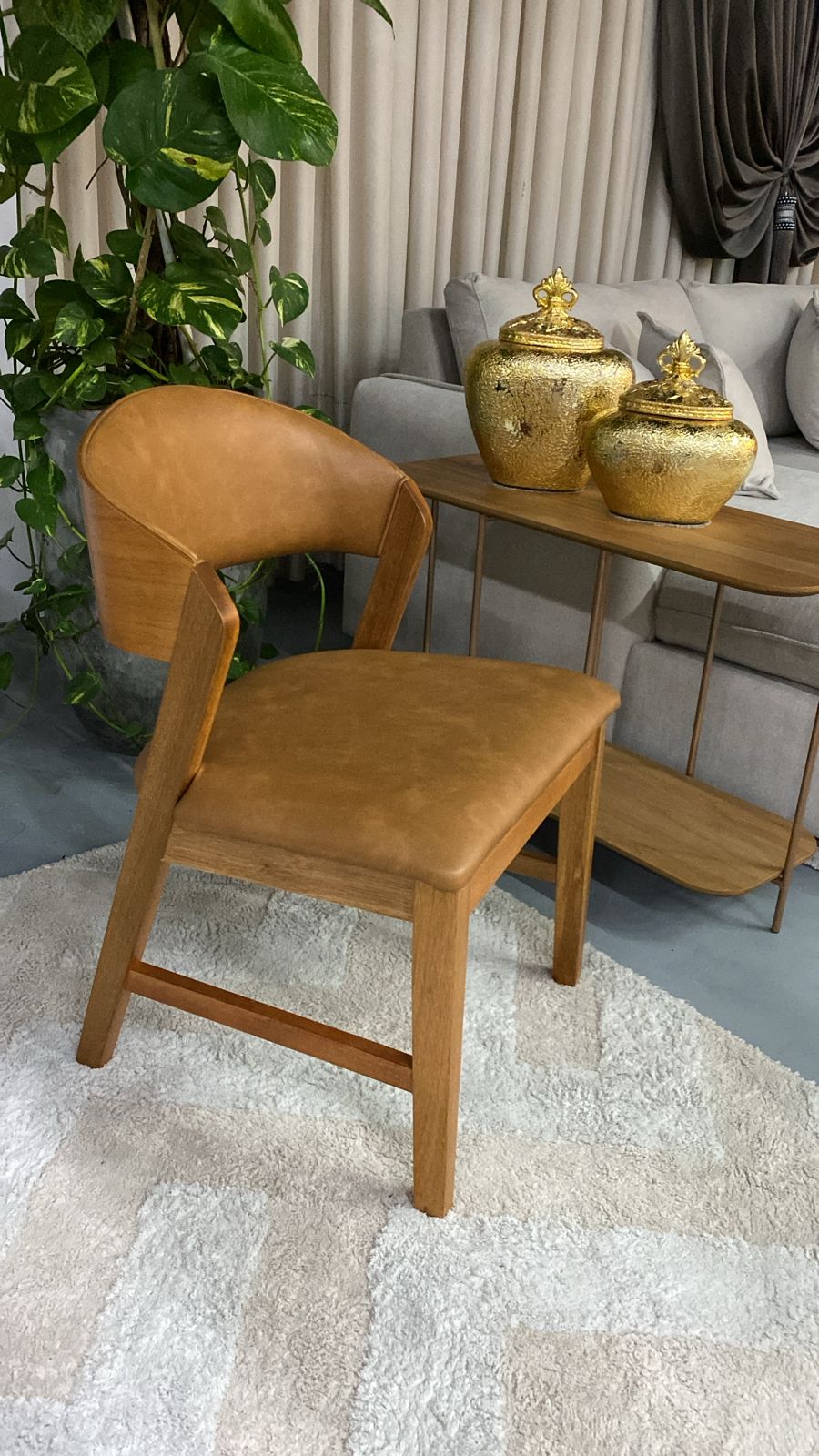 Cadeira em Madeira Maciça com Courino Caramelo: