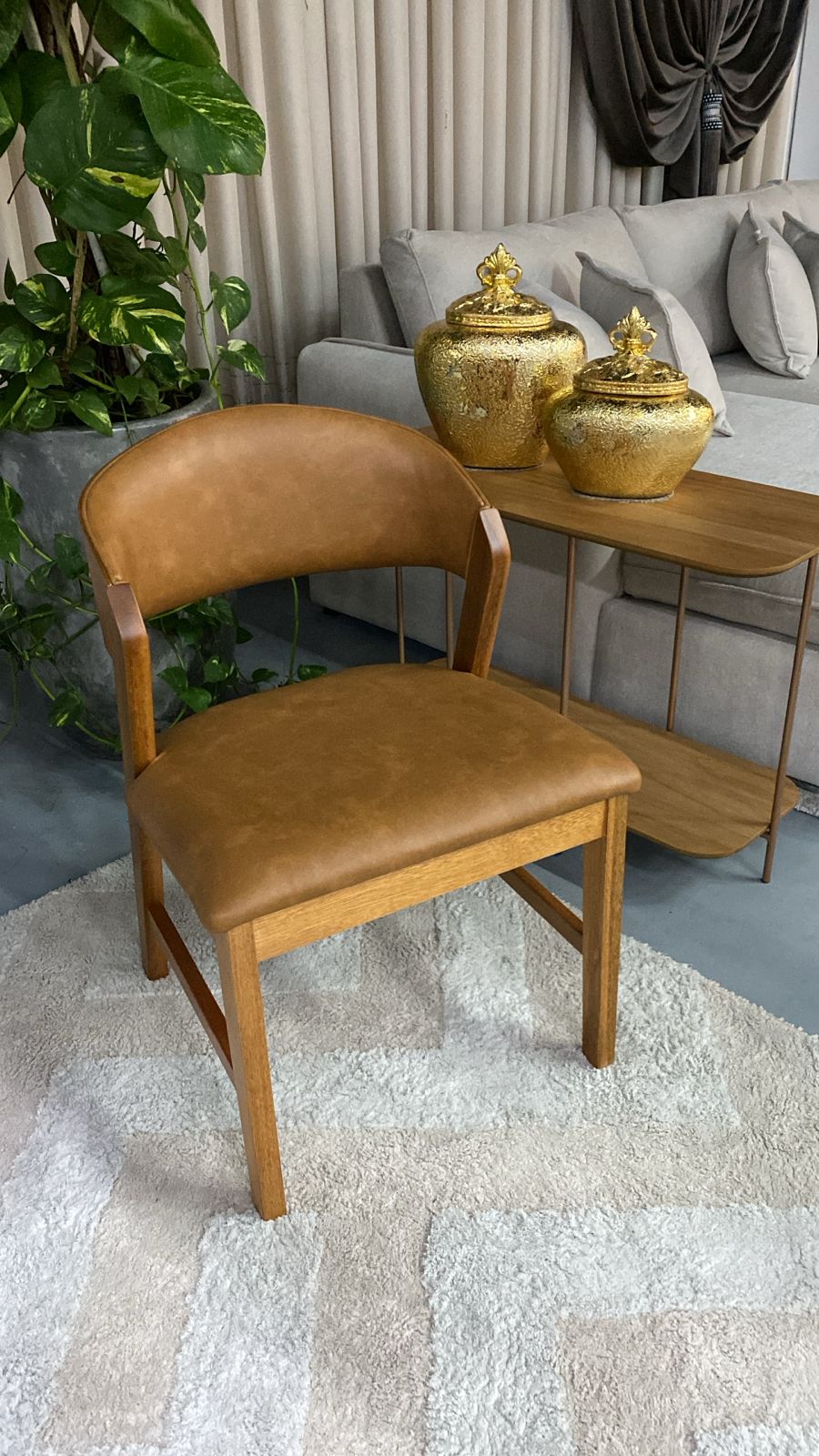 • Acabamento elegante: O tecido em courino na cor caramelo oferece um visual sofisticado e fácil de harmonizar com diversos ambientes.